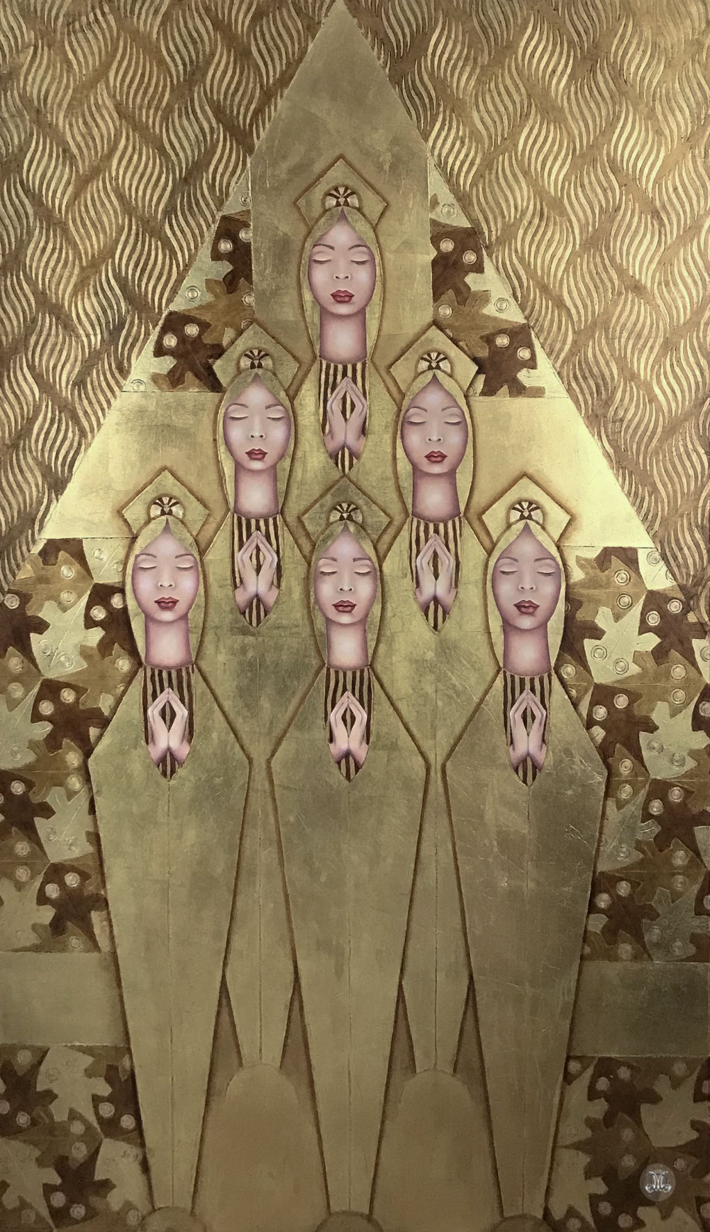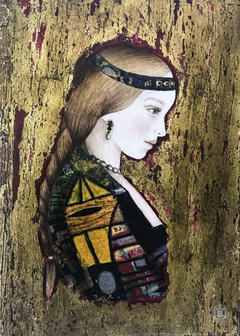 Técnica : Acuarela sobre papel de algodón y hojilla dorada